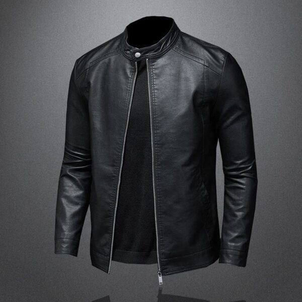 Spring Autumn Slim Fit Motorcycle Leather Jacket for Men – Stand Collar Casual Biker Coat