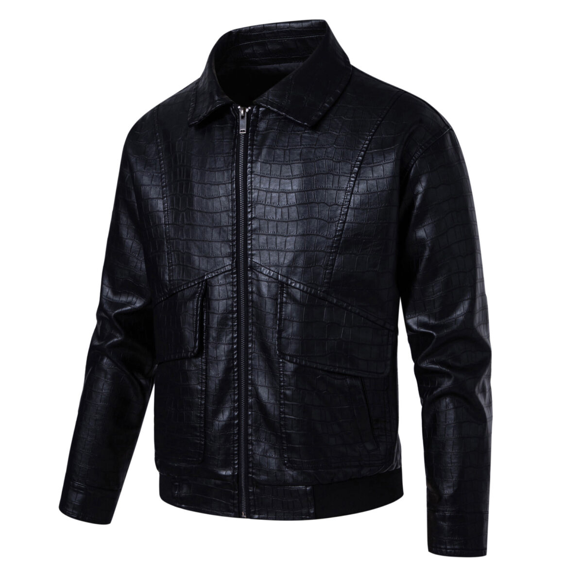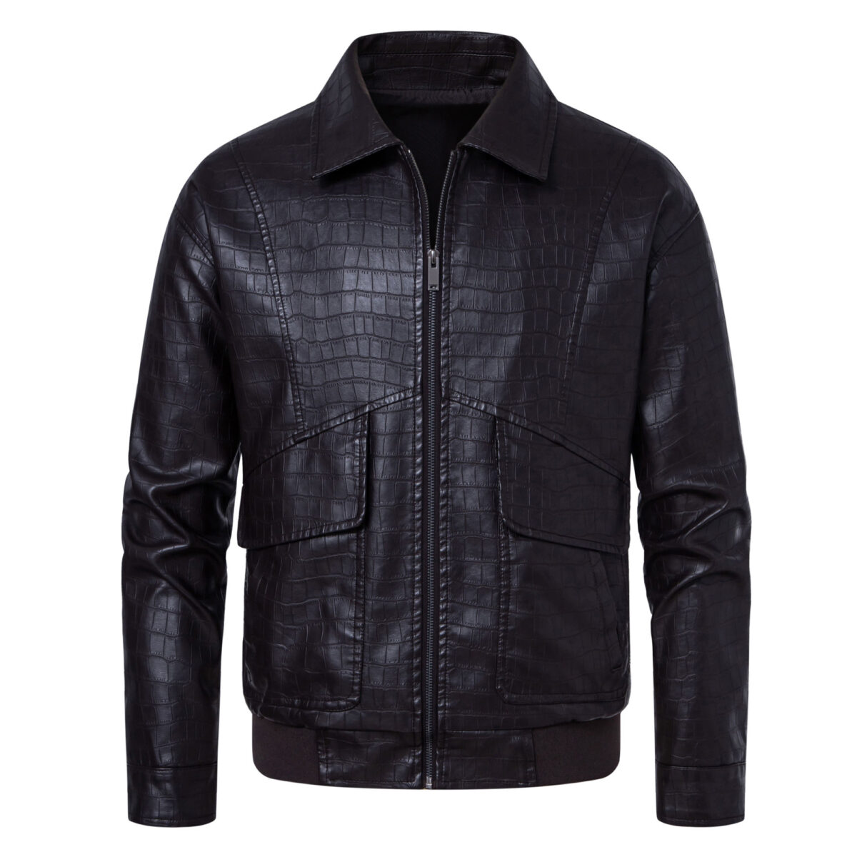 Men’s Crocodile Embossed Genuine Leather Jacket – Vintage Autumn Bomber